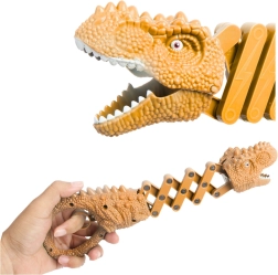Sjov legetøj til små palæontologer: bidende dinosaur i brun farve med pistolgriber. Når håndtaget trykkes, lukker de bevægelige kæber realistisk og giver masser af grin og actionfyldt leg. Det robuste design i kvalitetsplast styrker finmotorik, koordineringsevner og reflekser.