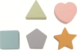 Fem indsætningsformer i indbydende farver hjælper børn med at genkende former og farver samt træne præcis gribeteknik og rumlig forståelse.