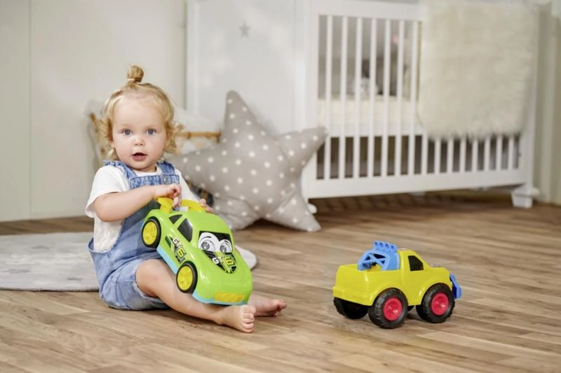 Oplev store og robuste plastbiler, der begejstrer børn med deres størrelse på 27 cm, venlige udtryk og jævne frihjulskørsel. Hver model er designet til små chauffører – afrundede former, sikre kanter og let greb giver komfortabel og sikker leg.