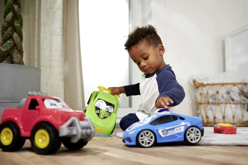 Glatte hjul og frihjulsmekanisme gør det let for børn at køre bilerne hen over gulv og tæppe – bare skub og kør.