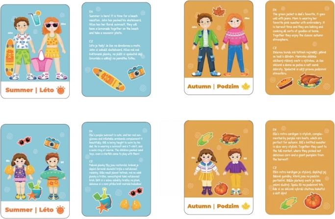 - 8 dobbeltsidede historiekort på tjekkisk og engelsk: sommer, efterår, vinterleg, høst og mere.