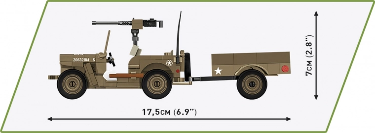 Byggesættet indeholder 200 klodser og 2 soldaterfigurer med tilbehør. Traileren kan let kobles på og af, hjulene ruller, og maskingeværet kan drejes – ideelt til at skabe egne WWII-scener. En fremragende gave til fans af militærteknik og unge byggere.