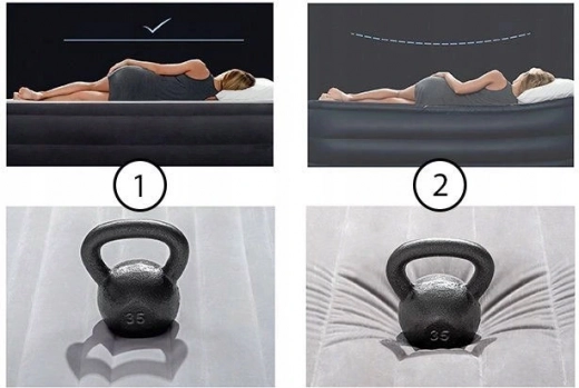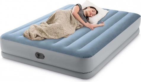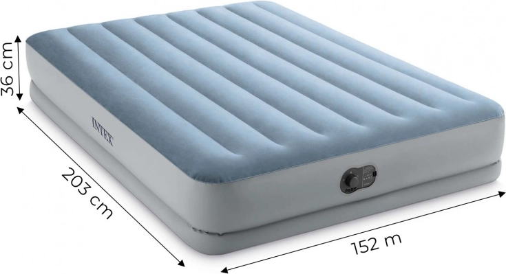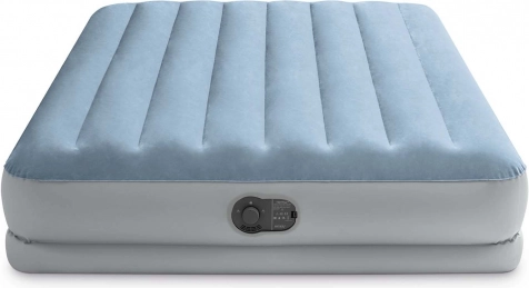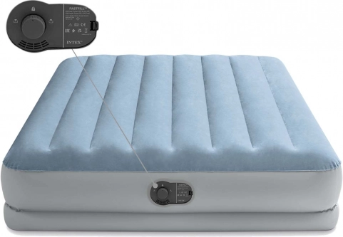 Den praktiske oppustelige seng fra INTEX er ideel som midlertidig seng til gæster, til sommerhus og rejser. Den forhøjede konstruktion gør det lettere at lægge sig og stå op, mens den velourbelagte overflade er behagelig at røre ved og forhindrer, at lagnet glider. Den integrerede elektriske pumpe gør sengen klar på cirka 3 minutter og tømmer den lige så hurtigt.