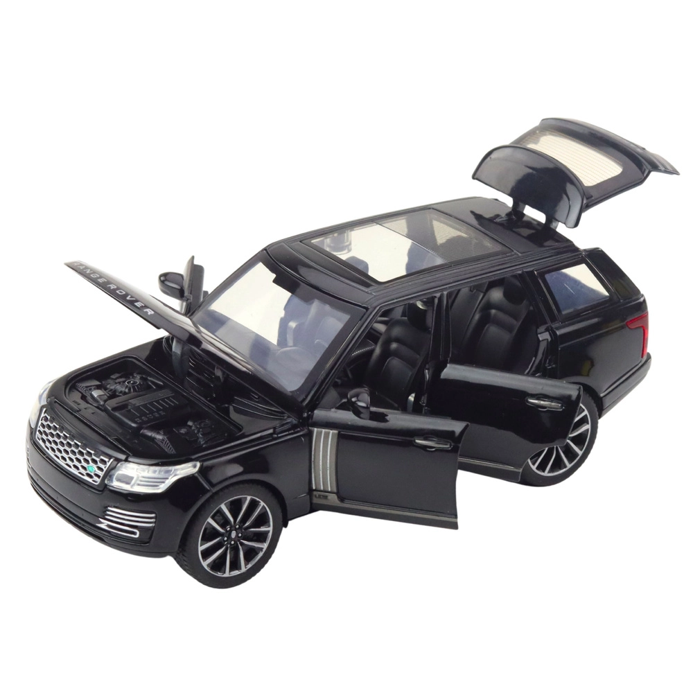 Realistisk metalmodel af RANGE ROVER i skala 1:32, der glæder både små og store bilfans. Den har åbningsbare døre, motorhjelm og bagagerum, og når de åbnes, aktiveres lydeffekter. Takket være de medfølgende batterier er den klar til leg lige efter udpakning.