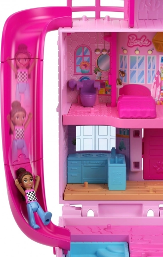 Oplev magien fra POLLY POCKET og BARBIE i ét – et kompakt dukkehus inspireret af det ikoniske Barbie Dreamhouse, som bringer tre mikrodukker, en hund og 11 tilbehør til endeløse historier. Du får en åbnbar tagterrasse med rutsjebane, en elevator med kørestolsadgang og en skjult seng i bogreolen. Ideel til både rejser og hjemmebrug, for børn fra 4 år.