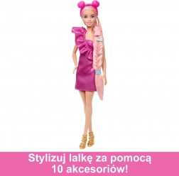 Oplev en verden af stil med dukken BARBIE Leg med hår. Takket være det meget lange blonde hår med farvede striber og et rigt sæt af tilbehør kan børn lave frisurer fra søde knolde til fantasifulde fletninger. Stylingen fuldendes nemt med en glitrende minikjole, udskiftelige højhælede sko og en håndtaske.