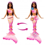 Oplev magien med dukken BARBIE havfrue Blomstrende blomster, som ved et skub på håndtaget på ryggen magisk blomstrer fra korsaget helt ned til halen. Ideel til leg på land og i vand, med langt brunt hår med lilla striber, ombré-effekt på halen og et perlediadem. Den uendeligt gentagelige transformation og glitrende detaljer vækker fantasi og kreativ leg.