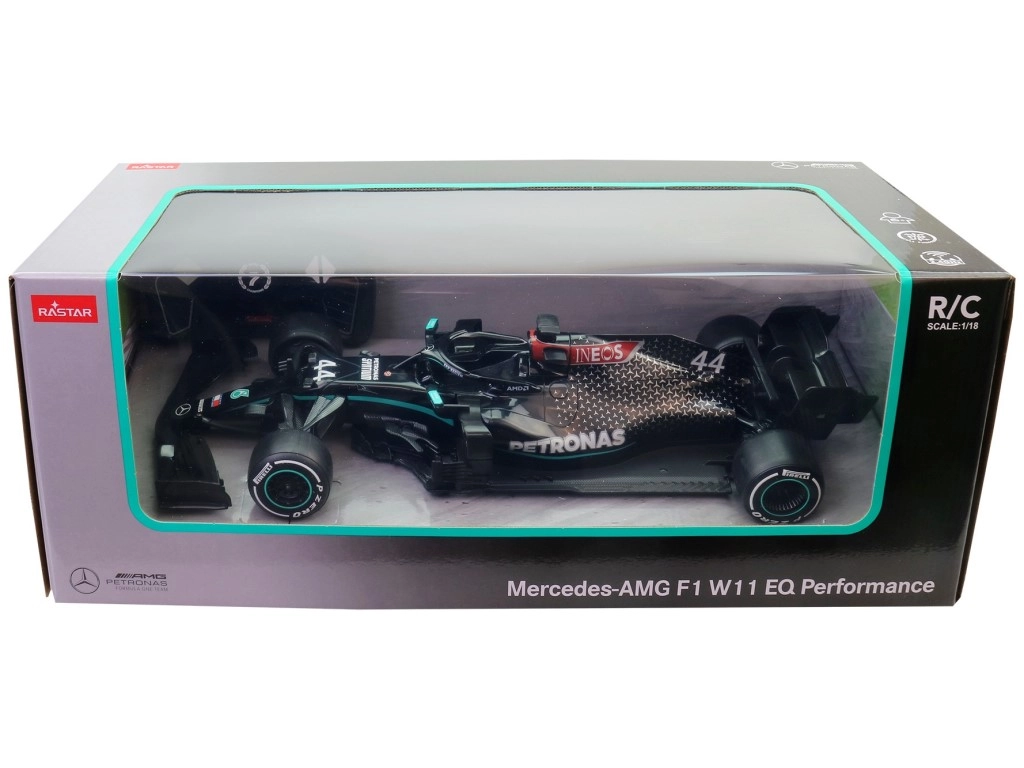 Detaljeret aerodynamik, slick-dæk og autentiske MERCEDES‑AMG F1 W11 EQ-farver forstærker oplevelsen ved både kørsel og udstilling på hylden.