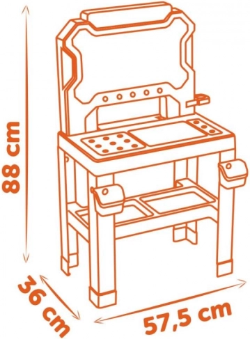 Giv børn deres eget værksted, der ligner fars rigtige arbejdsbord. Børneværkstedet Black+Decker Bricolo Center fra Smoby udvikler finmotorik, kreativitet og tekniske færdigheder. Den store arbejdsflade i trædekoration giver masser af plads til montering, måling og hammerarbejde.