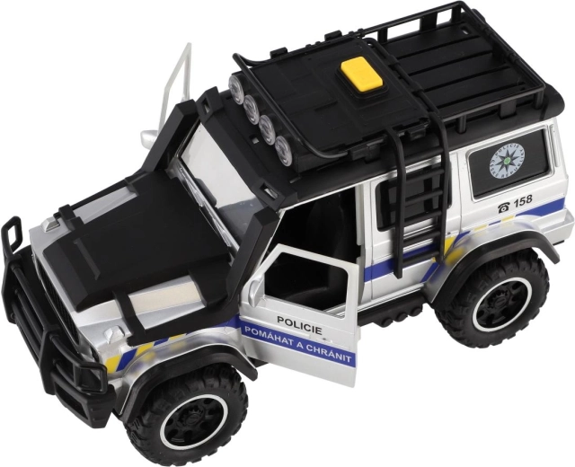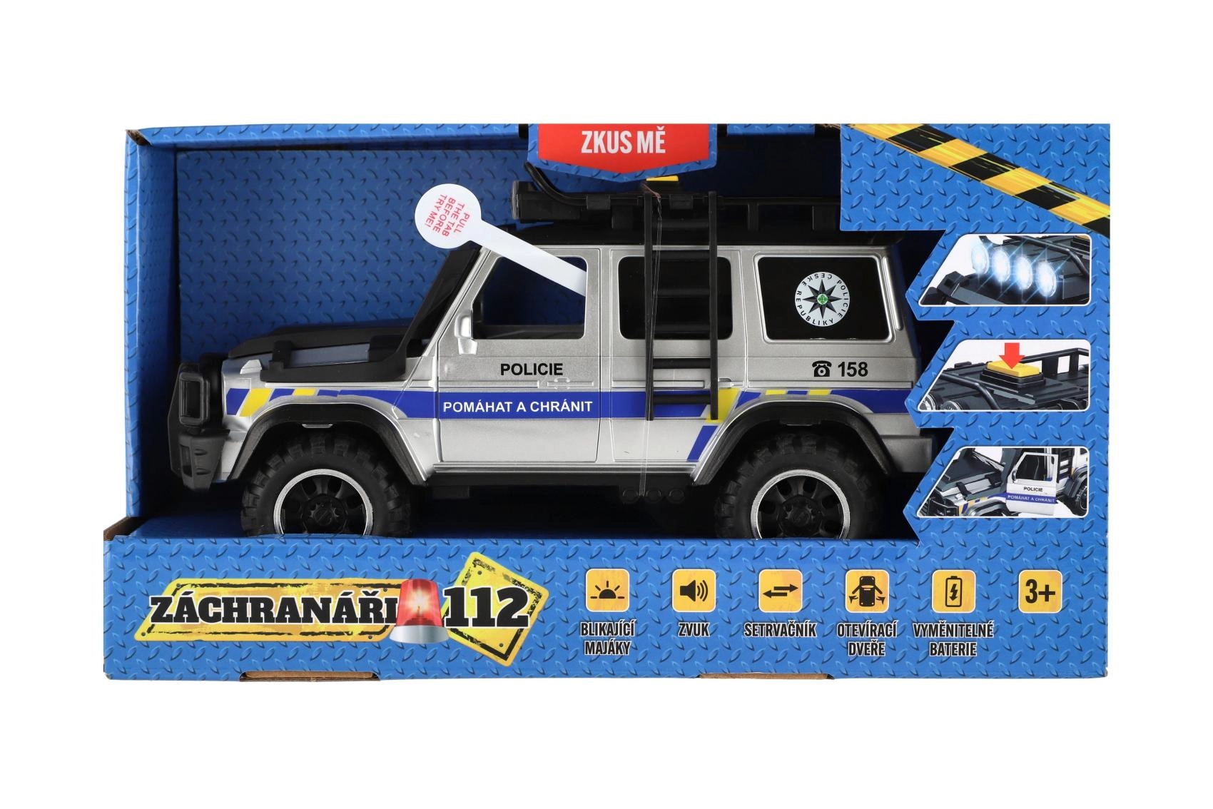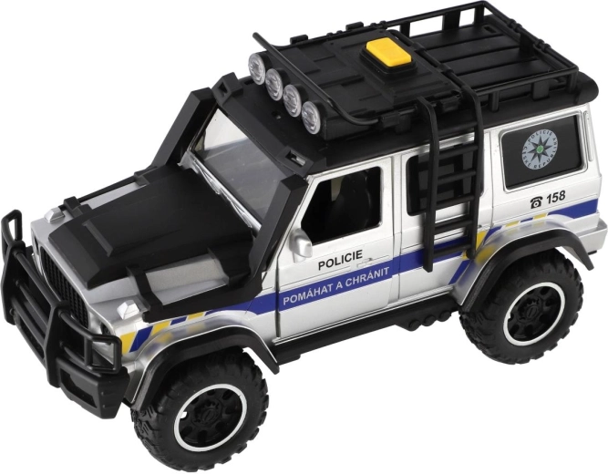 Tag på redningsmission med den detaljerede politibil, som vil begejstre enhver lille fan af actionlege. Når du trykker på knappen på taget, aktiveres sirene-lyde og blinkende blink, hvilket giver en realistisk atmosfære. Friktionsdrevet gør, at bilen efter optræk kører jævnt fremad.