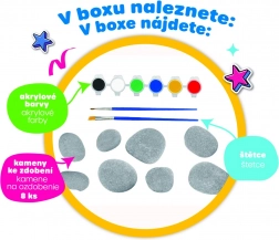 Opdag et kreativt sæt til at male på småsten, som giver børn mulighed for at forvandle almindelige sten til originale kunstværker. Sættet indeholder alt, hvad der er nødvendigt for at komme i gang – pensler, farver og småsten, som stimulerer fantasi, finmotorik og kreativitet. Velegnet til børn fra 4 år.