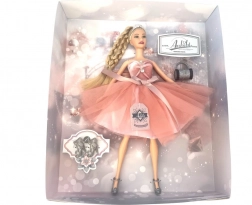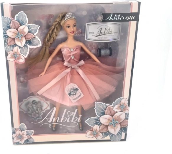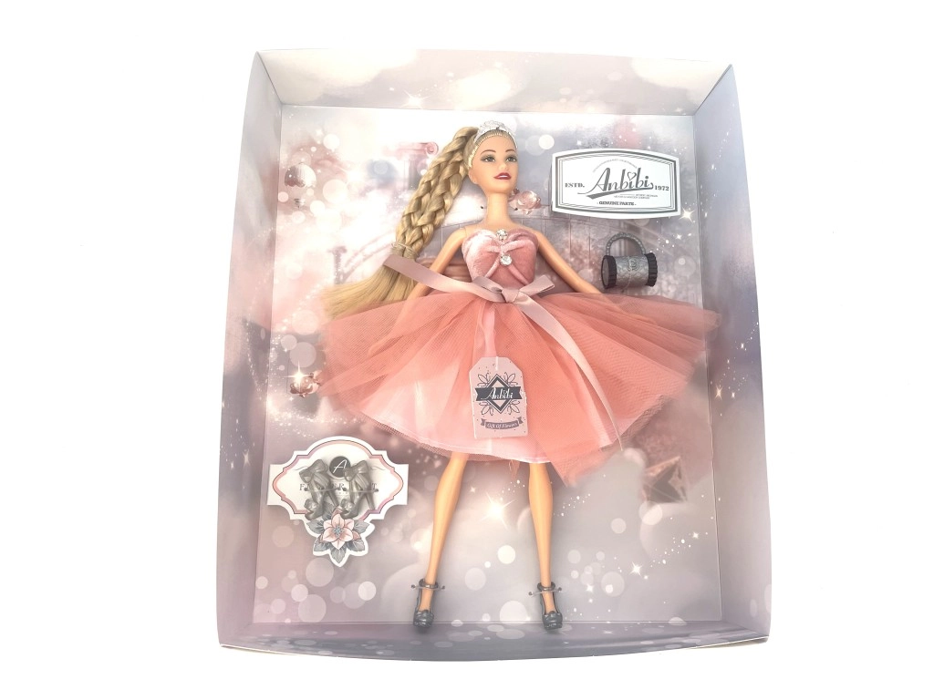 Denne charmerende dukke i lyserød kjole vil glæde enhver lille prinsesse. Med den behagelige størrelse på ca. 30 cm er den let at holde og bære og bliver en favorit ledsager derhjemme og på farten. De fine ansigtstræk og den omhyggeligt forarbejdede kjole giver dukken et realistisk og yndigt udseende.