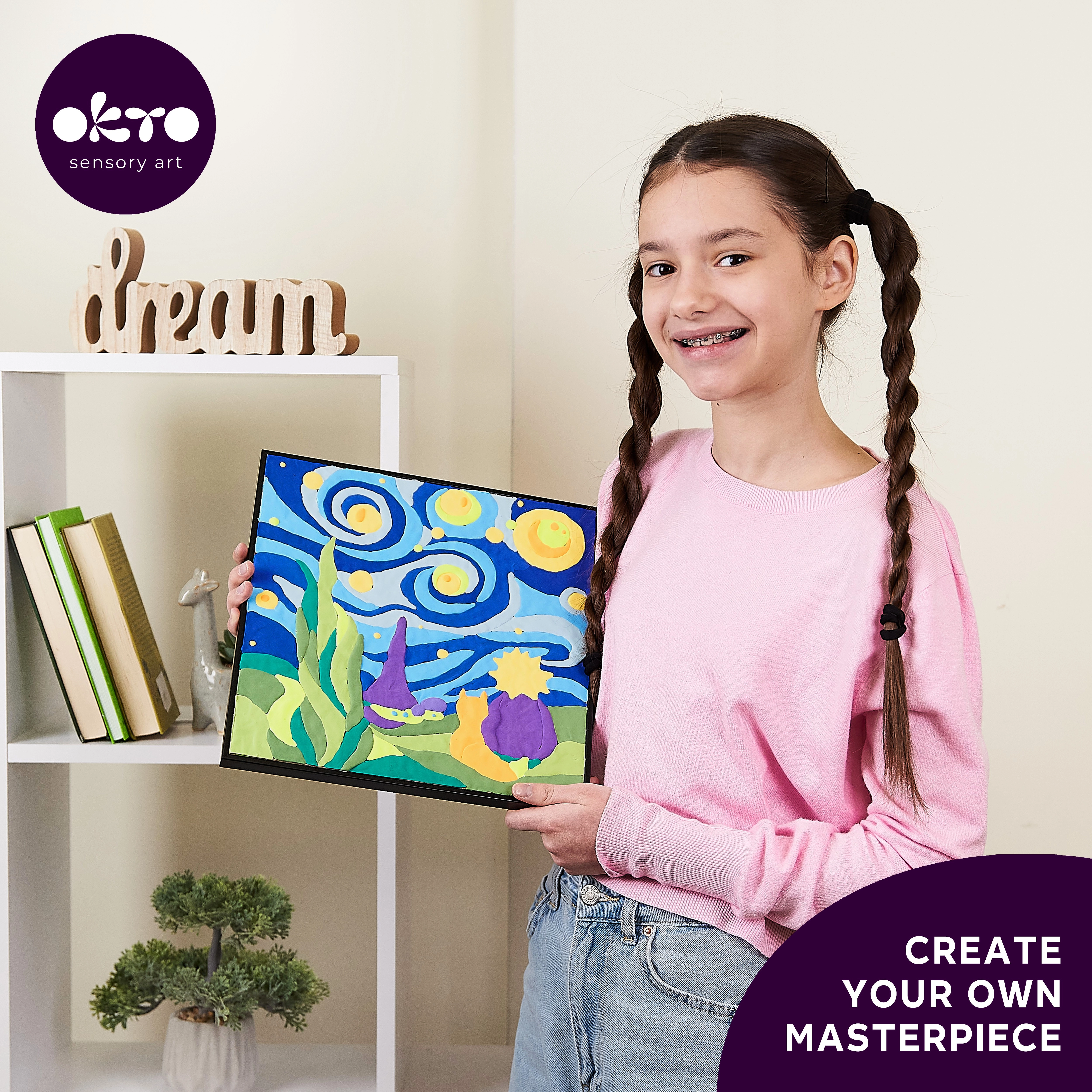 Kreativt sæt til børn og voksne – skab et magisk billede Den Lille Prins: nattehimmel ved hjælp af modellermasse og talt guidning. Let, sjovt og afslappende kreativt arbejde på et lærred i størrelsen 29 × 29 cm med komplet tilbehør i pakken.