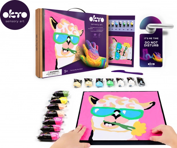 Skab dit eget farverige værk med det kreative sæt maling med masse efter tal med motiv af en lama. Ideelt til både børn og voksne, der elsker at skabe – sættet indeholder alt, hvad du behøver, samt et lærred på 29 × 29 cm.