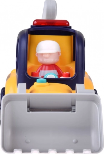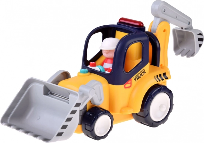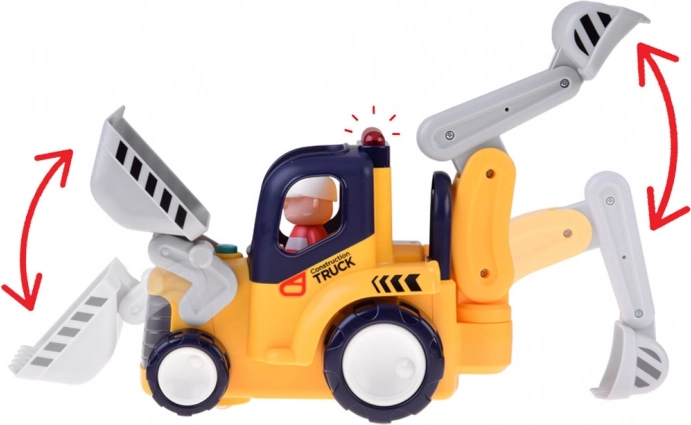 Modellen tilbyder automatisk tilstand med funktionen “stød og kør” til selvstændig bevægelse og fjernbetjent tilstand med tovejs-controller. Den bevægelige frontskovl og den leddede udgravningsspand udløser realistiske lyde. Der medfølger også en førerfigur (aktiverer kørsel med lyd og lys) samt en lille bold for endnu flere legemuligheder.