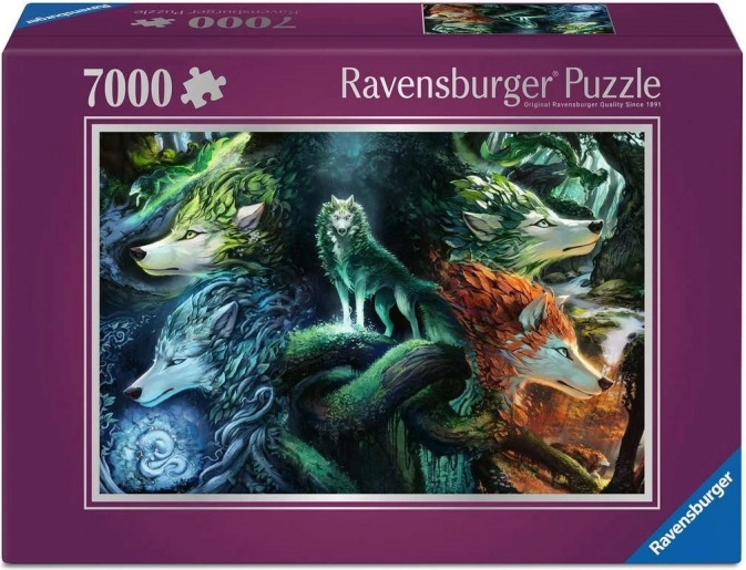 RAVENSBURGER puslespil Mystiske ulve – 7000 brikker, premiumkvalitet, præcise brikker og format 180 × 120 cm. En udfordring og smuk dekoration for puslespilselskere.