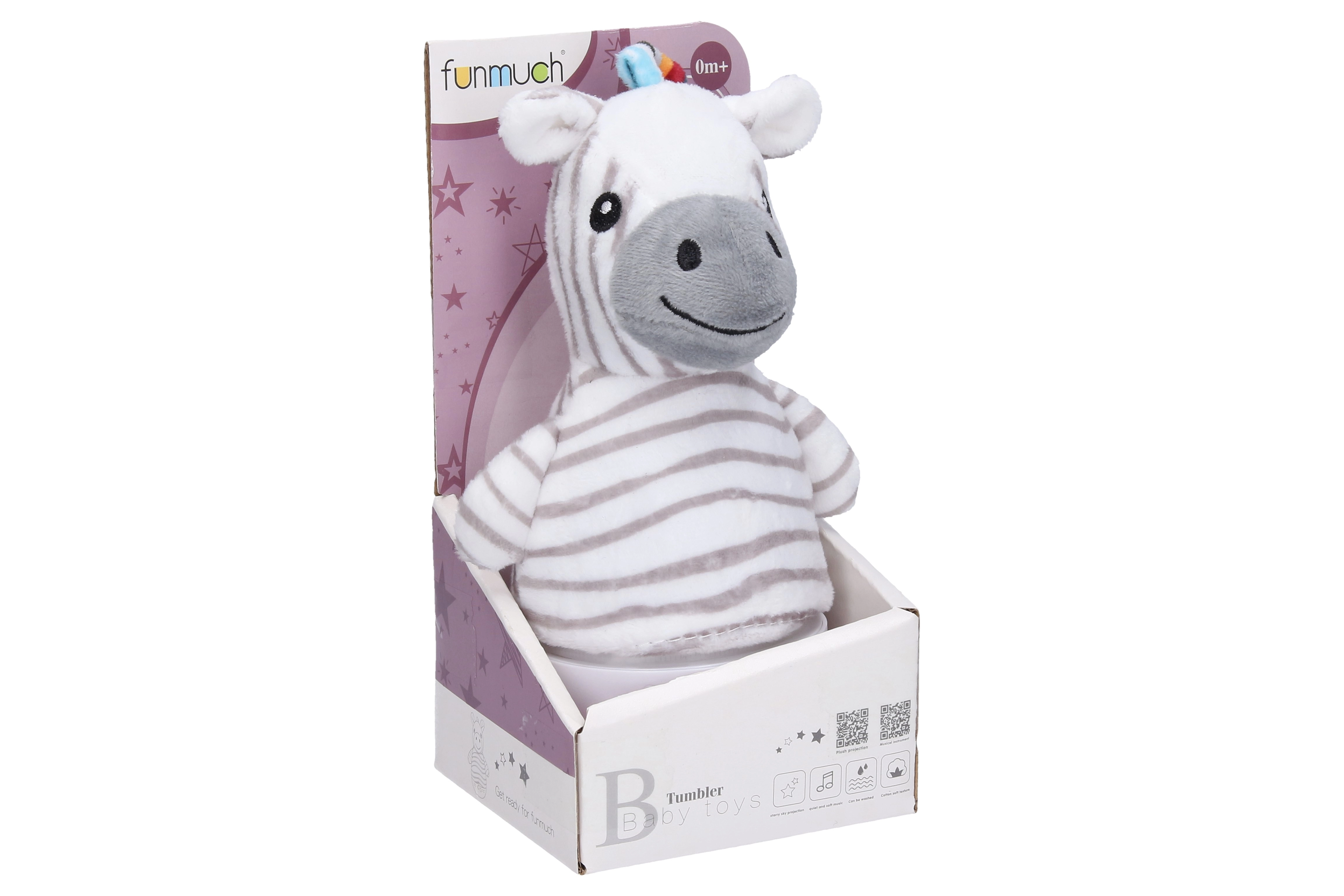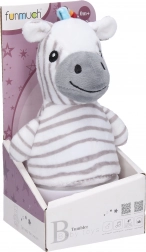 Denne bløde sovende zebra glæder børn med blide lyseffekter og beroligende lyde. Takket være den kompakte størrelse på 16 cm passer den perfekt i tremmesengen og på rejser og hjælper med at skabe en behagelig stemning før sengetid.