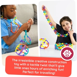 Med 45 dele tilbyder sættet et bredt udvalg af byggeprojekter – fra simple konstruktioner til mere avancerede 3D-modeller. De fleksible materialer fremmer kreativitet, efterlader ingen mærker på møbler og glider ikke på glatte overflader. Ideelt til kreativ leg derhjemme, i børnehaven og på farten.
