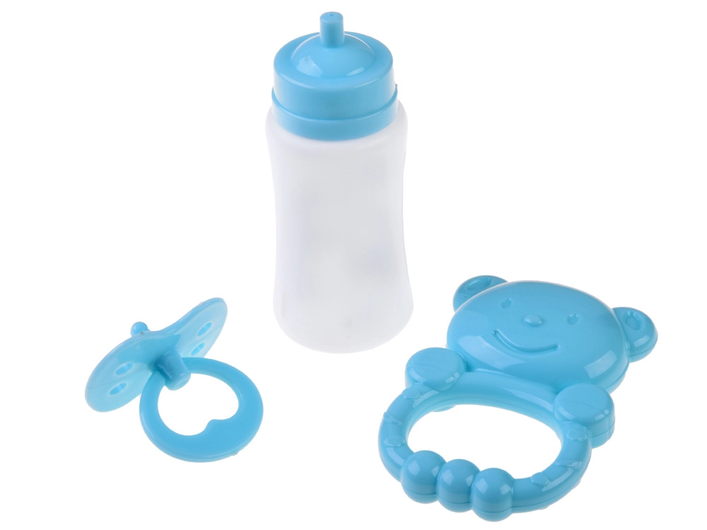 Medfølger: flaske, sut og bamse-rangle. Tilbehøret er let, nemt at gribe om og matcher outfittet perfekt.