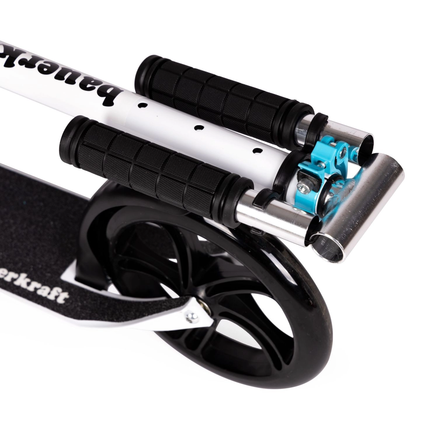 Den foldbare mekanisme med sikkerhedslås gør det muligt at klappe løbehjulet sammen på få øjeblikke. Det integrerede støtteben gør parkering nem uden at skulle læne det op ad noget.