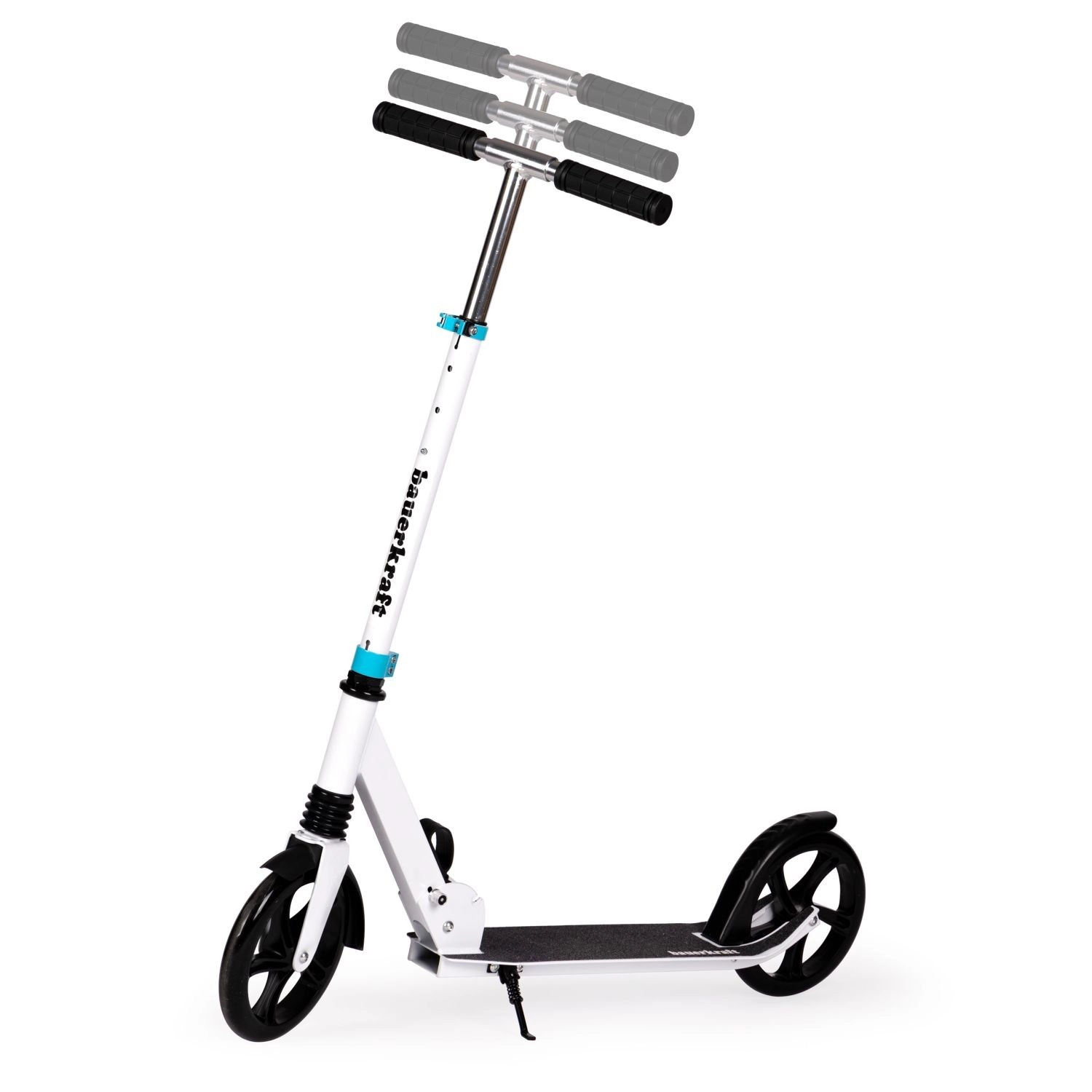 Løbehjulet kan nemt og hurtigt klappes sammen til kompakte mål, så du uden problemer kan tage det med i offentlig transport, opbevare det hjemme eller i skolen. Ergonomiske grips af blødt, skridsikkert materiale sikrer behageligt greb og sikker styring. Justerbar styrhøjde 95–105 cm sikrer korrekt position for brugere i forskellige højder og “vokser” med barnet.