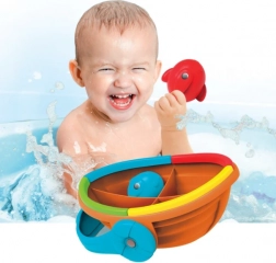 Båden fungerer som en praktisk boks til fiskene og flyder samtidig, så børnene kan få masser af sjov i badekarret. Det stilfulde design og de bløde toner er behagelige for børns perception, og det genanvendte materiale vil glæde miljøbevidste forældre.
