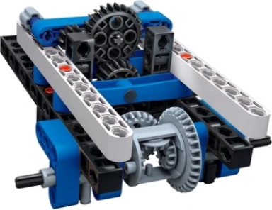 Byggesættet indeholder over 270 komponenter, en funktionsdygtig tandhjulsmekanisme og en kontakt til to lege-tilstande – manuel skub og drev. Trin for trin bliver du guidet af en trykt manual og 3D-instruktioner i appen, så samlingen er sjov og overskuelig. Resultatet er en stabil, attraktiv model, der er velegnet til udstilling og videre udforskning.