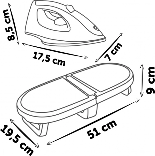 Den sammenklappelige konstruktion sparer plads, så sættet nemt kan opbevares selv i et lille værelse. Realistiske elementer som klik-knappen på strygejernet og sprayflasken forstærker legeoplevelsen.