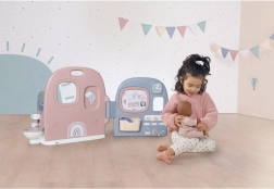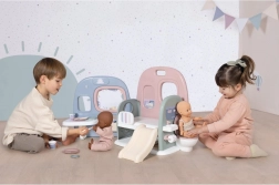 SMOBY BABY CARE er et charmerende legeområde til dukker, der giver børn utallige legescenarier – fra at lære hygiejnevaner til at fodre og lade dukken hvile. Den praktiske indretning og mange detaljer støtter selvstændighed, empati og udvikling af finmotorik.