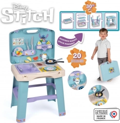 Dette børnekøkken forvandles fra kuffert til et fuldt køkkenstudie i få enkle trin – det er nok at folde det ud, sætte benene på, og så kan madlavningen begynde. Det glade motiv DISNEY STITCH stimulerer fantasien og rollelegen, så børnene får timevis af sjov.