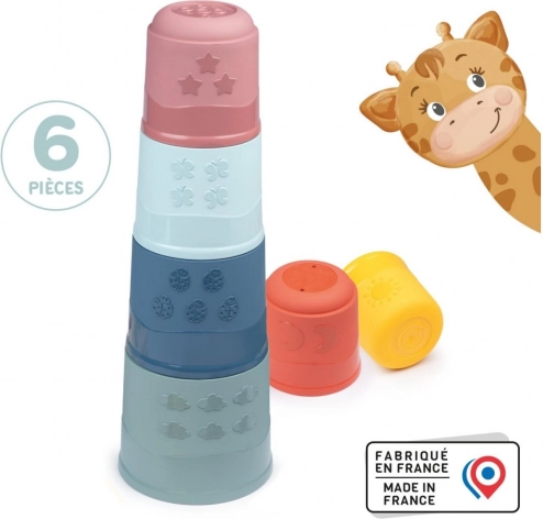 Farverigt stabletårn LITTLE SMOBY: 6 kopper til stabling og vandleg. Udvikler finmotorik, koordination samt genkendelse af farver og former.