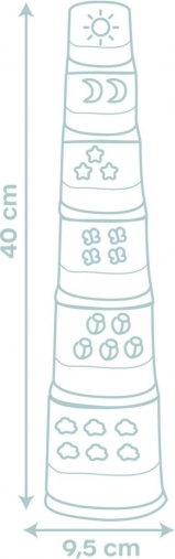 Det farverige stabletårn LITTLE SMOBY giver børn timevis af opdagelse og leg. 6 farverige kopper kan lægges i hinanden eller stables oven på hinanden, og i badet kan man se vand strømme gennem hullerne. Legen udvikler naturligt finmotorik, hånd-øje-koordination, genkendelse af former og farver samt logisk tænkning.