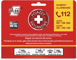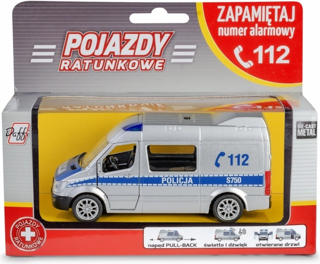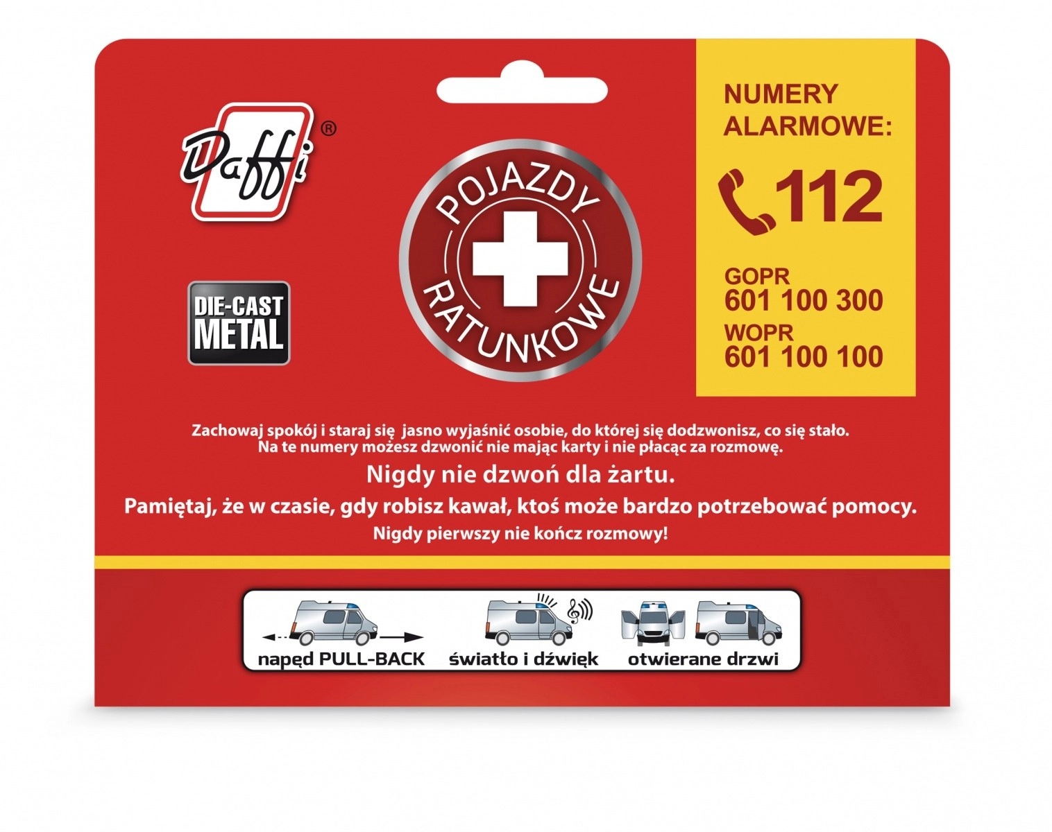 Modellen er en del af en tematisk serie af redningsenheder – politi, brandvæsen og ambulancetjeneste. På emballagen finder du også nyttige oplysninger om korrekt adfærd i krisesituationer og alarmtelefonnummer, så legen bliver samtidig lærerig.