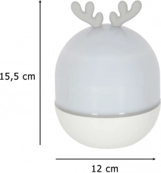 Denne kompakte projektor med søde “rensdyr”-ører skaber beroligende lysprojektioner i hele rummet. Den kan bruges som en blid natlampe med dæksel eller som projektor med åben kuppel. Med 6 udskiftelige film skifter du nemt tema – fra stjernebilleder og planeter til undervandsverden, fødselsdag, jul eller valentinsdag.
