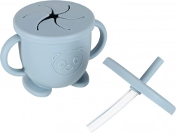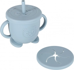 - Komplet udstyr: tallerken med 3 rum, skål, kop med 2 låg + sugerør, 2× ske, 2× gaffel, justerbar hagesmæk