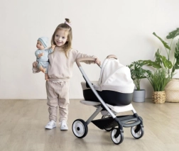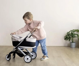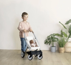 Opdag en moderne og alsidig dukkevogn, der følger med barnets leg. Takket være den smarte konstruktion kan den på få øjeblikke bygges om fra dyb lift til sportsversion. Den øverste del kan let tages af, så babydukken kan bæres i den praktiske kurv – ideel til ture og børneværelset.