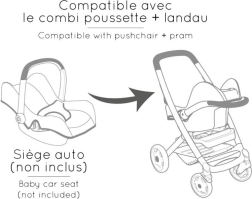 - Kombineret dukkevogn 3 i 1 (lift / sportsklapvogn / bærekurv)
