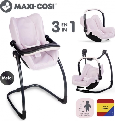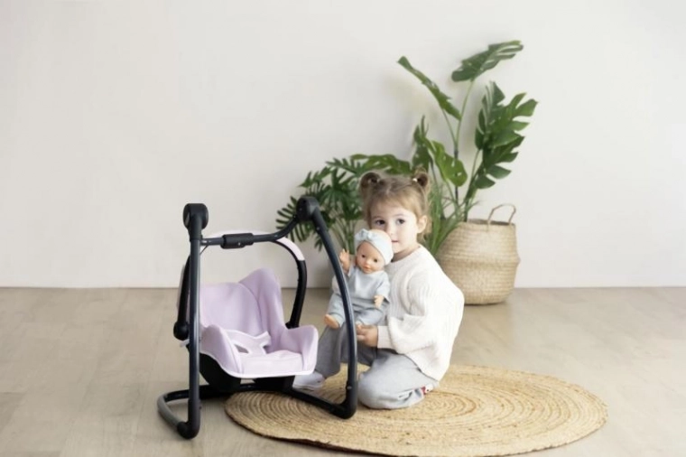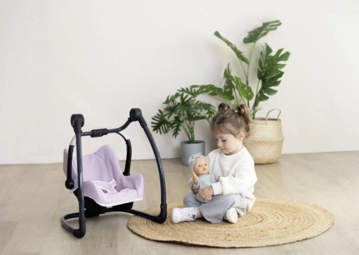 Dette gennemtænkte 3-i-1 sæt forvandler dukkepasning til realistisk og sjov leg. Autostolen kan nemt hænges i rammen og bliver straks til en blid gynge. Ved at dreje konstruktionen får du en høj spise-stol med bakke – ideel til fodring af dukker op til 42 cm. Den robuste konstruktion og den bløde polstring sikrer både dukken komfort og stabilitet ved daglig leg.