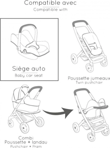 - 3-i-1 dukkesæt (autostol / gynge / høj stol)