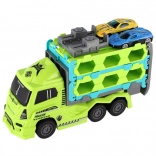 Giv børnene en actionfyldt køreoplevelse med denne plastlastbil – en transportør til racerbiler. Sættet indeholder 2 sportsbiler, lastbilen har friløb for hurtig kørsel og en længde på 22 cm. Perfekt til leg inde og ude, og den styrker fantasien og motoriske færdigheder hos små chauffører.