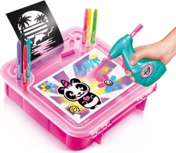 Opdag airbrush-malingens verden og skab dine egne unikke designs hvor som helst! Dette komplette sæt indeholder alt, hvad børn fra 6 år behøver for let farvespray: 1 airbrush, 8 farvede tuscher, 10 skabeloner og 10 ark til kreativt arbejde. Den kompakte pakke er ideel til rejser og støtter både kreativitet og finmotorik.