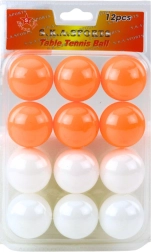 Sæt med kvalitets bordtennisbolde i hvid og orange til både rekreativt spil og træning. Indeholder 12 stk., fremstillet af holdbar plast med fremragende opspring og lav vægt for et jævnt og underholdende spil derhjemme, i klubben og i skolen.