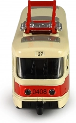 Denne metalsporvogn T3 på ca. 16 cm gengiver trofast en legende fra byens skinner – verdens mest udbredte sporvognsvogn. Den robuste udførelse kombineret med præcise detaljer, pantograf og tofarvet lak giver et realistisk look til både samlervitriner og kreativ leg.