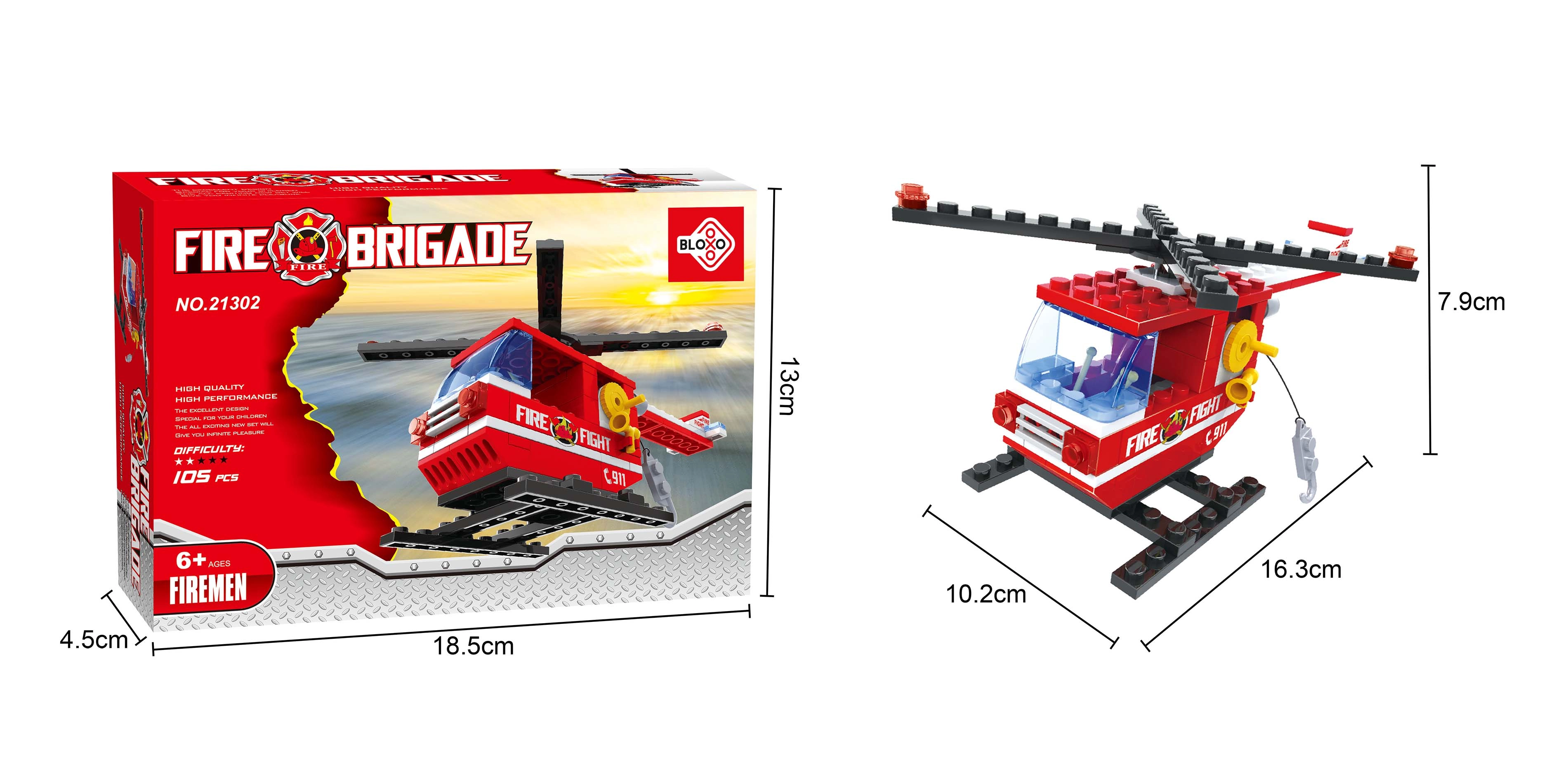 Byg en actionfyldt scene med byggesættet BLOXO Brandmænd – helikopter og ryk ud til indsats. Børn vil elske både at bygge og lege bagefter, hvor fantasi og rollen som modige redningsfolk får frit spil. Delene er designet til nem samling og solid sammenføjning.
