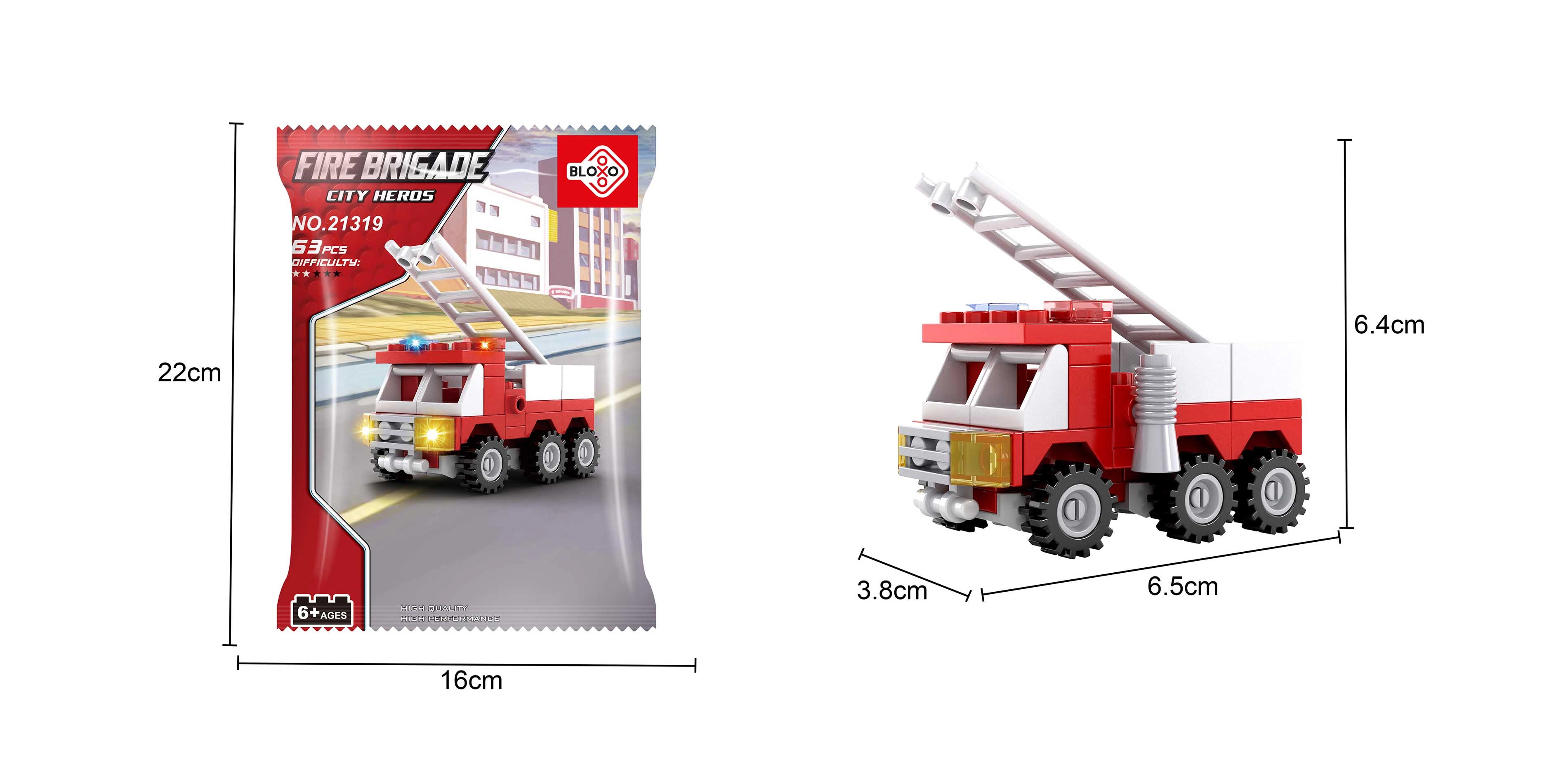 BLOXO Brandvæsen – Bil er det ideelle valg for små fans af redningsteknik. Sættet indeholder 53 dele, som børn nemt kan bruge til at bygge en actionfyldt brandbil og drage ud på heroiske eventyr. Takket være kompatibiliteten med andre byggesæt kan modellerne udvides og egne scenarier skabes.