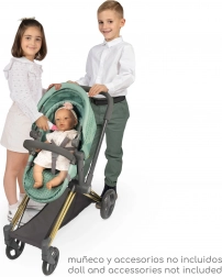 Det praktiske design kompletteres af en justerbar kaleche, trepunktssele til sikker fastgørelse af dukken og en rummelig nederste kurv. Vognen foldes hurtigt sammen til opbevaring eller transport i bilen. En elegant aftagelig taske i kollektionens farver medfølger.