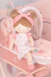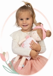 Dukken er designet med fokus på nem vedligeholdelse – den kan håndvaskes ved 30 °C. Den leveres i en beskyttende emballage, som beskytter legetøjet under transport. Det stilfulde look i Tulipe-kollektionen forener tulipanmønstre med blide nuancer for et virkelig elegant og tidløst udtryk.