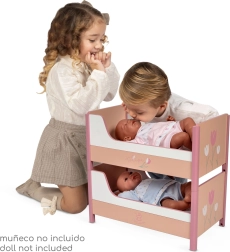 Praktiske mål, to sengelejer med madrasser og meget nem håndtering vil glæde både børn og forældre. Sengen er en fantastisk gave til små omsorgspersoner og passer smukt ind i ethvert pigeværelse.
