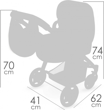 Denne sammenklappelige dukkevogn udmærker sig ved en gennemtænkt kombination af funktioner og smukt spansk design. Den aftagelige liggedel kan vendes både med og mod kørselsretningen og forvandles let til en sportslig sædeversion. Med trepunktssele sidder dukken altid sikkert og stabilt.