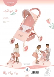 Oplev magien ved Tulipe-kollektionen – sarte laksefarvede pasteller, et fint blomster mønster og ikoniske detaljer gør denne klapvogn til et smukt tilbehør for enhver lille mor. Takket være det lave håndtag og den lette konstruktion er den nem at køre selv for de mindste børn.